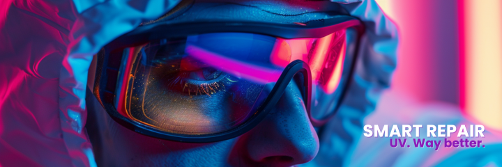 Революційний пакет з УФ-технологією — ремонт за лічені хвилини! Шпаклівка SPOTLIGHT UV та ґрунт UNDER UV‑SWIFT миттєво тверднуть під УФ-світлом — одразу можна шліфувати.